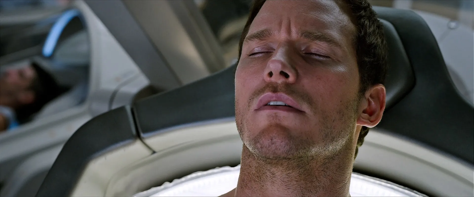 A spacecraft traveling to a distant colony planet and transporting thousands of people has a malfunction in its sleep chambers. As a result, two passengers are awakened 90 years early.
